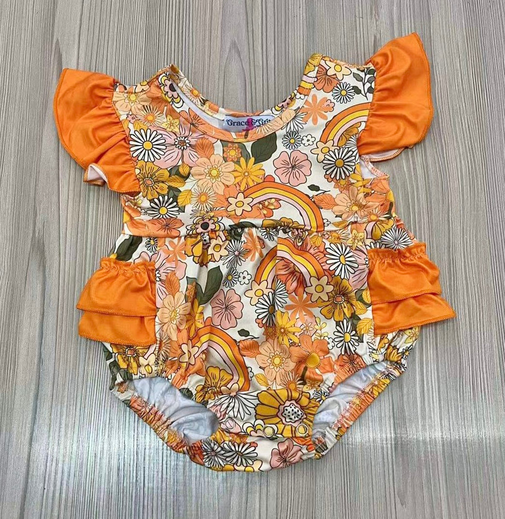Orange Vintage Floral Romper